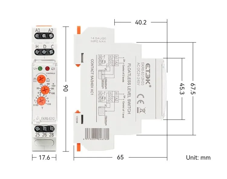 | EKR8-6312H33 | Float less Level Switch type 3 knob working voltage 24-240VAC/DC 0.5S-10S delay |