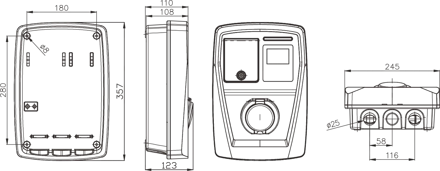 | Charging current | 10-16-20-25- 32A (5 levels adjustable) | |||