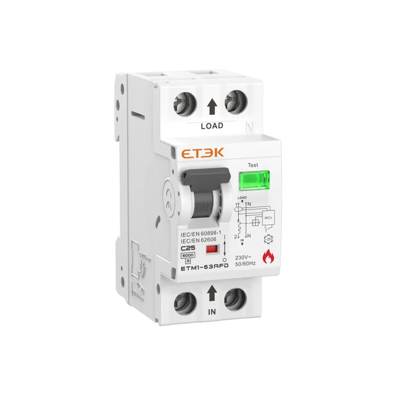 ETM1-63AFD is an Arc Fault Detection Device (AFDD) with an integrated miniature circuit breaker (MCB), engineered to mitigate electrical fire risks by detecting hazardous series and parallel arc faults. It offers a 10 kA short-circuit breaking capacity and supports rated currents up to 63 A, making it suitable for residential, commercial, and light industrial installations.