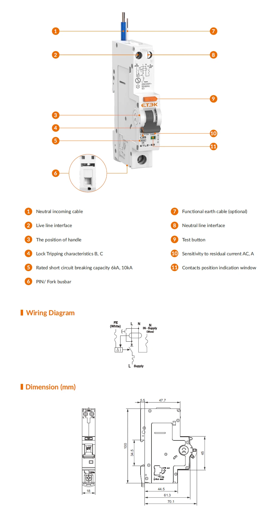 | Rated short-circuit capacity(lcn) | ETL2-63:6kA;ETL2-63H:10kA |