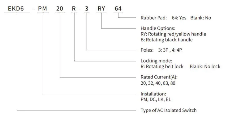 | EKD6-PM80-3 | AC lsolated Switch 3P In:80A Small Black Handle |
