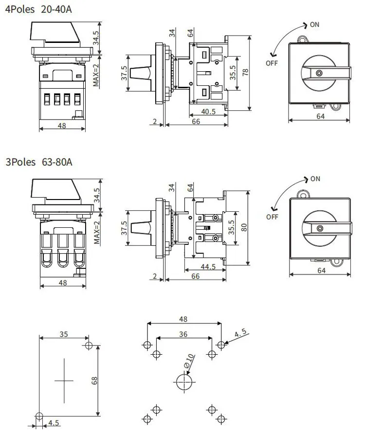 | EKD6-PM80-4 | AC lsolated Switch 4P In:80A Small Black Handle |