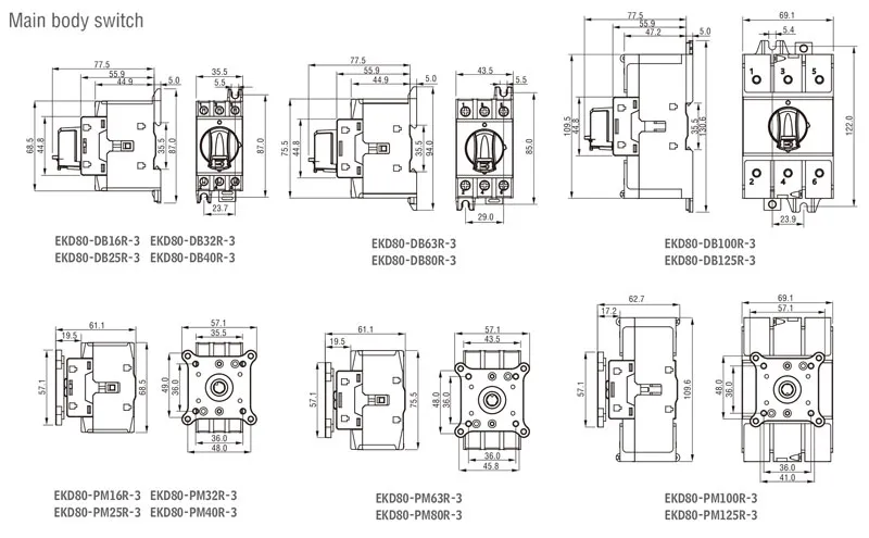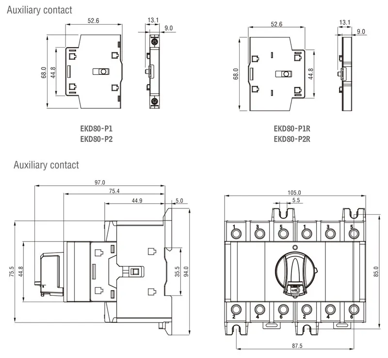 The isolating switch adopts the same auxiliary contact, and the auxiliary contact and the main pole of the switch acts at the same time. A normally open contact with PR disconnects function can be provided as required. The isolation switch can be installed with up to four auxiliary accessories (About 2 and 2 on the left) |