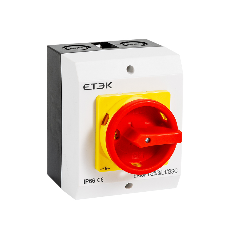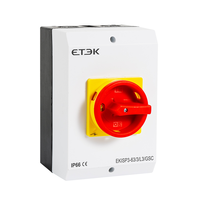 EKISP weatherproof AC isolator switches are engineered for safe and reliable circuit isolation in demanding environments. The series includes multiple models, including EKISP0-16/20, EKISP1-25/32, EKISP3-40/63, and EKISP5-80/100, to meet a wide range of current requirements. Designed for AC 50Hz systems, these switch disconnectors support AC-21A, AC-22A, and AC-23A utilization categories depending on the model, making them suitable for intermittent and periodic duty operations.