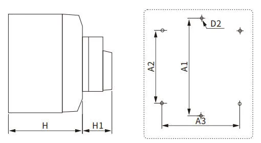 | A | B | H | H1 | D2 | A1 | A2 | A3 | |