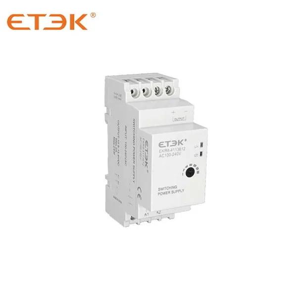 EKR8-4 series is an economical and ultra-thin rail-type power supply that meets German industrial standards. It is suitable for installation on 35/7.5 or 35/15 rails. In order to save space, the body is designed to be 18mm (1SU) and 36mm (2SU) width. The entire series uses a full range of AC input from 85VAC to 264VAC (277VAC is also applicable), and all comply with the EN61000-3-2 standard on the harmonic current specifications specified by the European Union.
