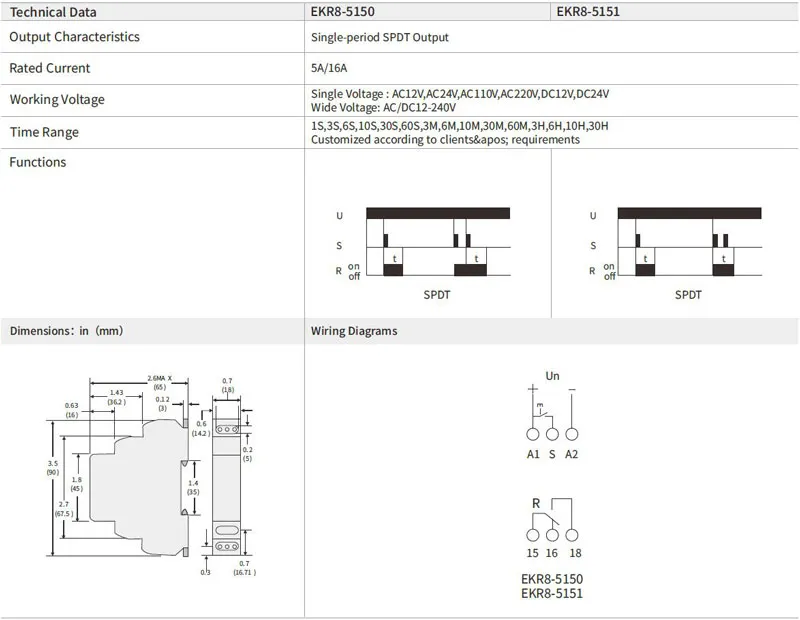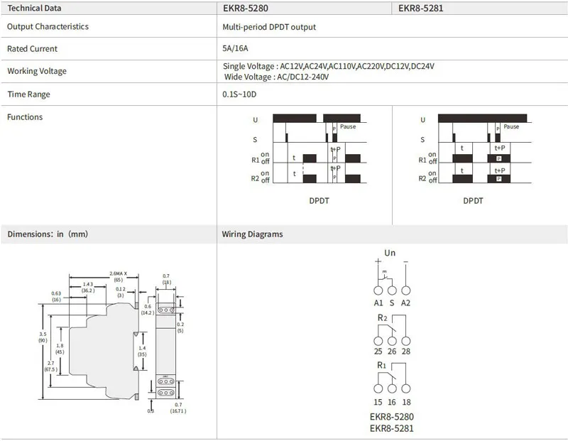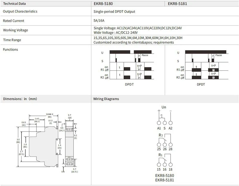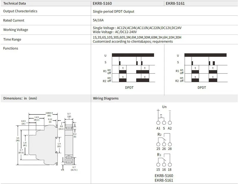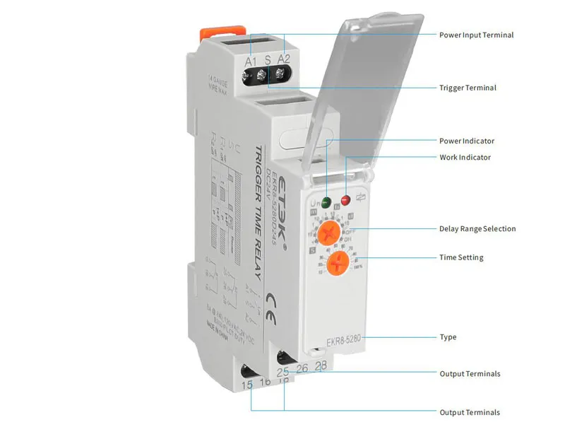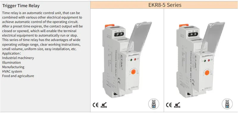 EKR8-5 Series Din Rail Type SPDT/DPDT Delay Time Relay
