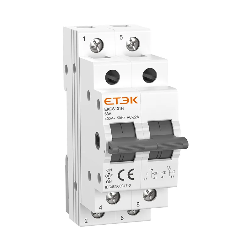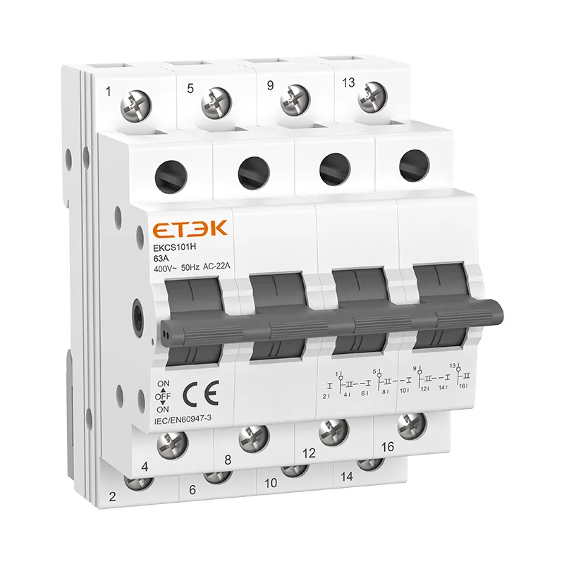 ETEK EKCS101H MCB changeover switch is a type of manual operated switch that is used to switch load between two power supplies. This device can achieve a maximum operating current of 63 amps.It is commonly used in industries as well as in domestic areas, especially in individual bungalows for use in low voltage distribution circuits. The purpose of the switch is to transfer electricity from the commercial power grid to a local generator during an outage. It is also known as a transfer switch.