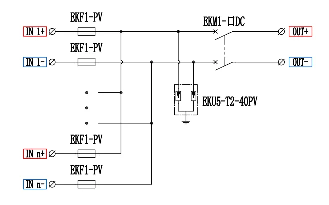 The EKDBS-PV series solar photovoltaic DC combiner box is designed with a high-strength plastic shell to ensure that the product is sturdy and durable. The combiner box has an IP65 protection level and provides optimal protection under harsh environmental conditions. These combiner boxes are suitable for domestic and industrial photovoltaic power generation systems with operating voltages of 500V, 600V and 1000V.