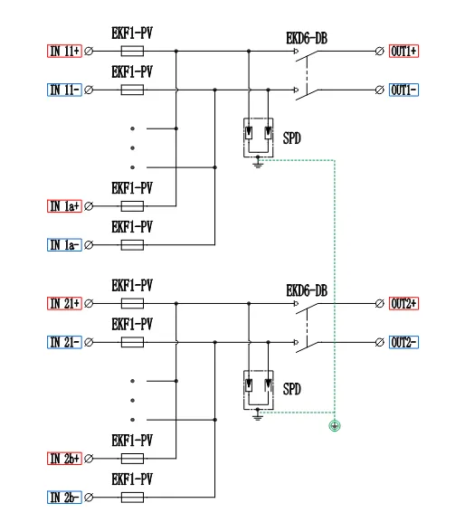 The EKDBS-PV series provides lightning protection, short-circuit protection and grounding protection to ensure system safety. It supports up to 6 strings of DC input and can be easily mounted on the wall. In addition to the core components, all components can be customized according to user requirements.