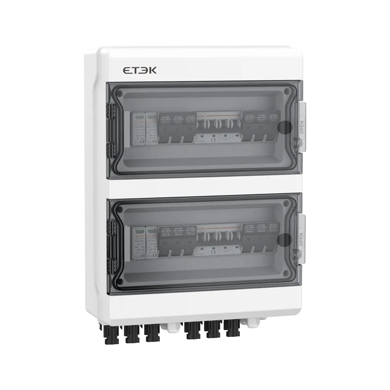 The EKDBS-PV series solar photovoltaic DC combiner box is designed with a high-strength plastic shell to ensure that the product is sturdy and durable. The combiner box has an IP65 protection level and provides optimal protection under harsh environmental conditions. These combiner boxes are suitable for domestic and industrial photovoltaic power generation systems with operating voltages of 500V, 600V and 1000V.