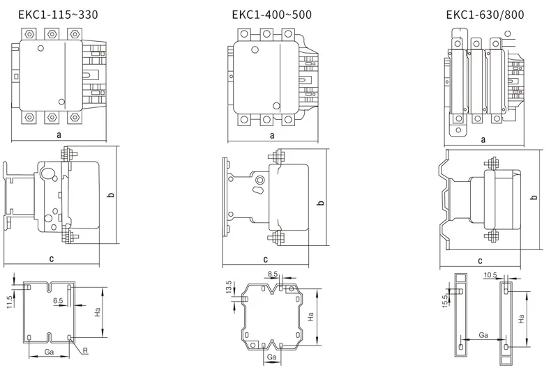 | EKC1-630/800 | 309 | 304 | 255 |