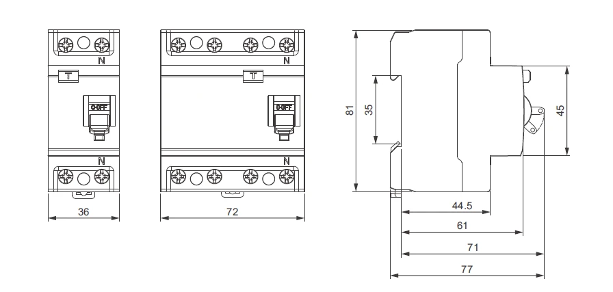 | No. of poles | 1P+N,3P+N, N Pole on the right |