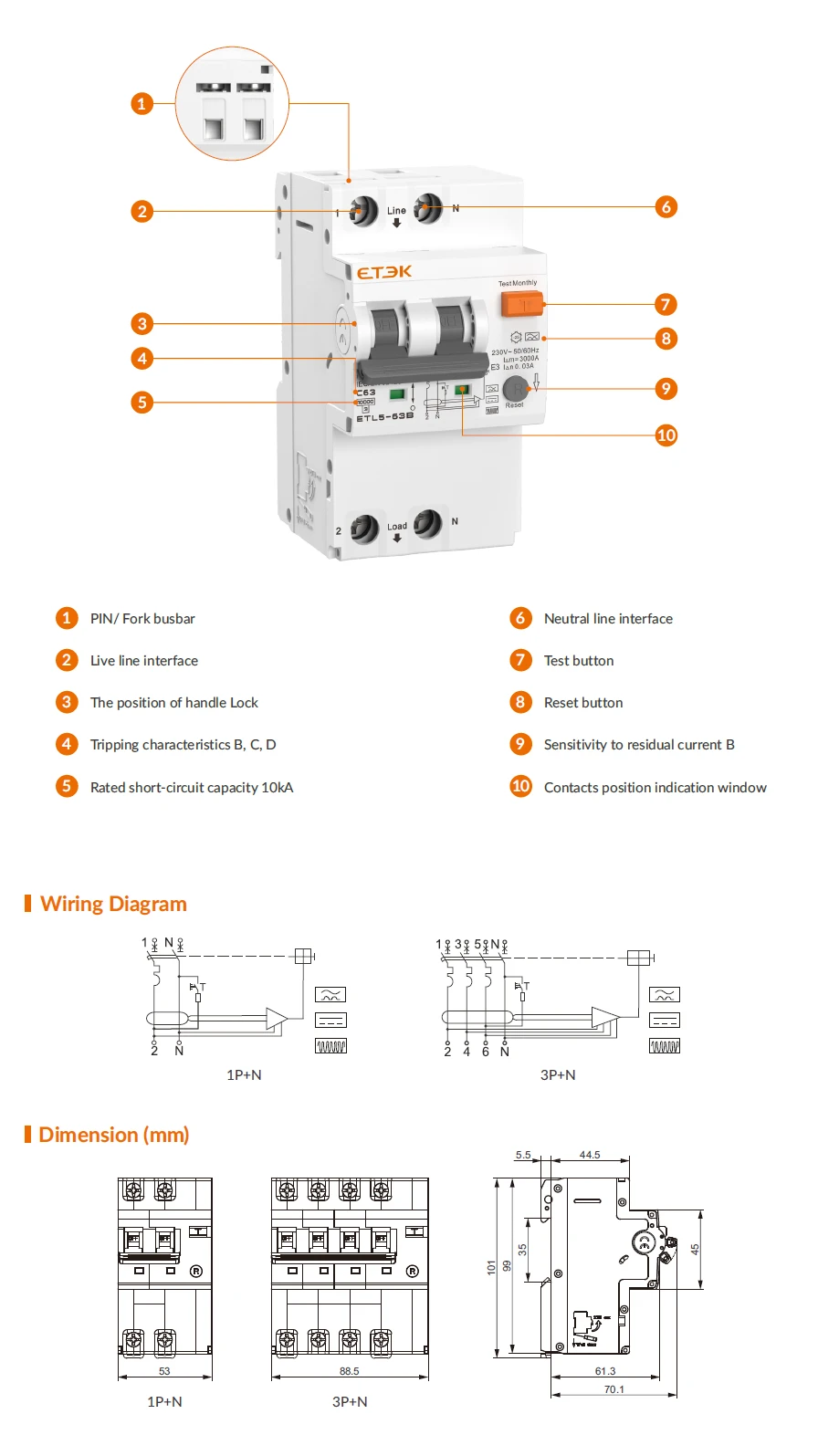 | No.of poles | 1P+N,3P+N | |
