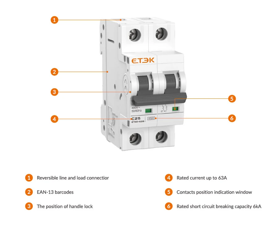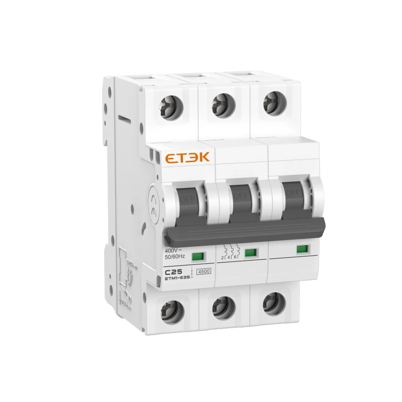 ETM1-63S Series Miniature Circuit Breaker is specifically designed for terminal power distribution protection in commercial office buildings, residential premises, and general industrial applications. It is suitable for circuits with AC 50/60Hz, a rated voltage of 110/240/415V, and a rated current up to 63A.