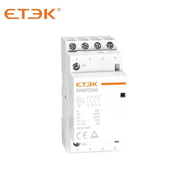 ETEK EKMF modular contactor designs offer manual and automatic versions with a wide range of ratings from 16A to 100A. Widely used in buildings for switching and controlling lighting, heating, ventilation, motor and pumps, the modular contactors take noise reduction to a new level.