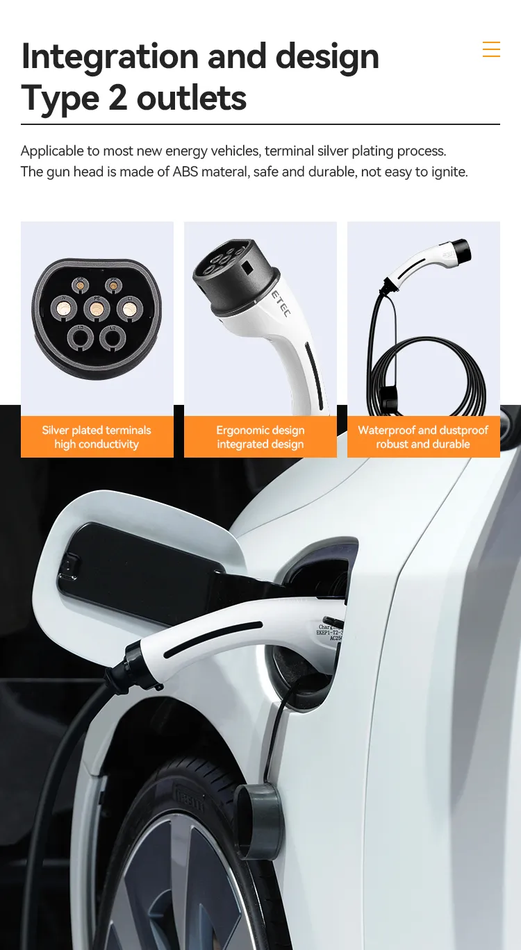 Type 2 Female European plug with charging cable, it is a Female Type 2 end plug to connect directly on the charging vehicle, suitable for users who like to DIY their own charging piles or Charging pile manufacturer, products meet the IEC 62196-2 charging connector standards. They are mainly two current options of 16A and 32A, which are divided into single-phase and three-phase version and defaults to a 5m black straight cable.