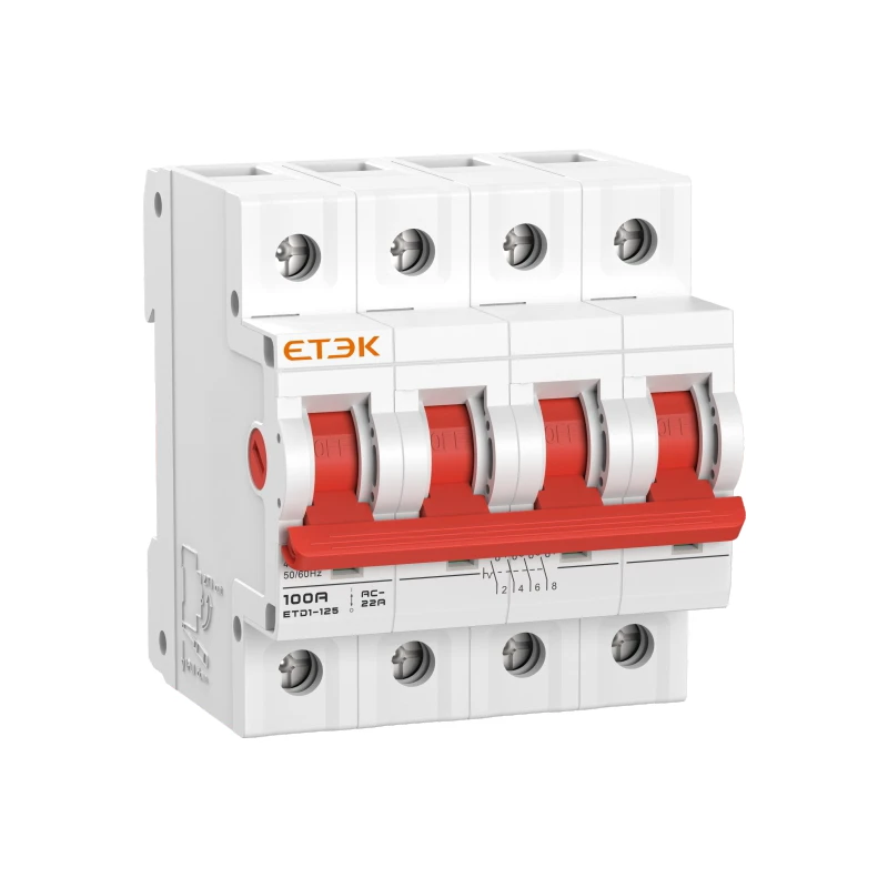 ETD1-125 Isolators, designed for circuits up to 125A, are manually operated switch disconnectors capable of making, carrying, and breaking current under normal circuit conditions. while maintaining short-circuit current withstand capacity for specified durations.