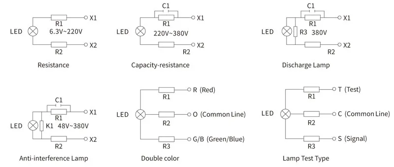 | 6.3V | 12V | 12V | 24V | 48V | 110V | 220V | 380V | ||