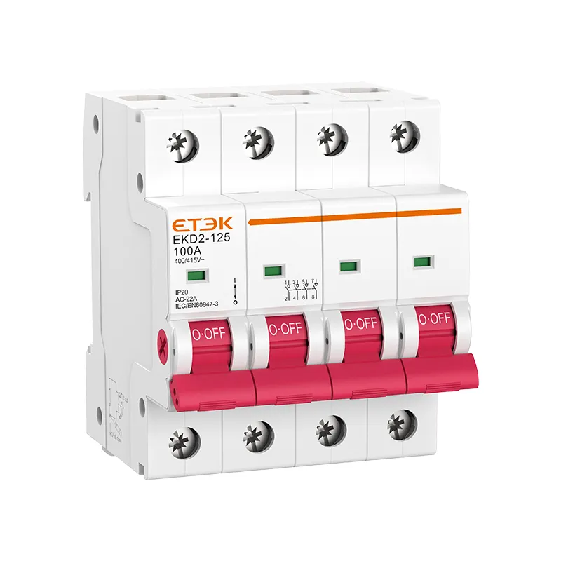 EKD2-125 Isolation Switch is suitable for AC 50Hz or 60Hz, rated current 125A, rated working voltage 230V and 400V or below in the power distribution; It is mainly used as the main switch of terminal electrical appliances and also control various types of electric motors, small power appliances and lighting places; Its mechanical life is 10,000 times, of which the electrical life is 4,000 times.
