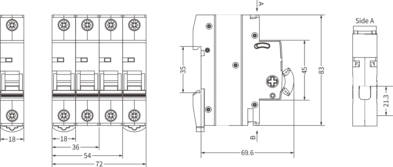 ● Rated voltage: 230/240V~ for 1P, 400/415V~ for 2, 3, 4P