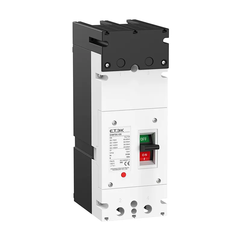 EKM7DC is a solar photovoltaic-specific molded case circuit breaker developed by ETEK Electric, compliant with the IEC 60947-2 standard. It features a rated working voltage of up to DC1500V, a rated insulation voltage of 1500V, a rated impulse withstand voltage of 12kV, and a rated current range of 100A to 1600A. These circuit-breakers are capable of breaking short-circuit currents up to 20kA in 1500V DC voltage applications.