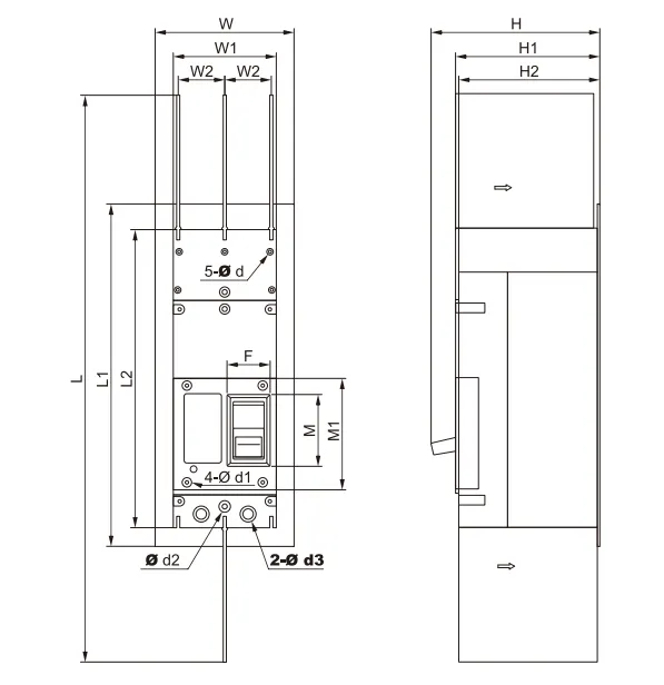 | Model | W | W1 | W2 | L | L1 | L2 | M | M1 | F | H | H1 | H2 | d1 | d2 | d3 |