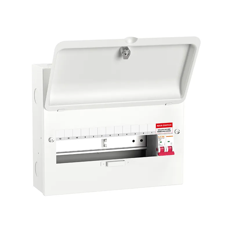 EKDB16S(L) Main Switch Consumer Unit delivers a clean, expandable foundation for residential and light‑commercial distribution. Built to BS EN 61439‑3 with a non‑combustible steel enclosure, it features a 100A double‑pole isolator and generous free ways across sizes, making it ideal for RCBO‑centric installs or phased circuit expansion. Installers benefit from backed‑out captive screws, a removable DIN rail with support T‑bar, and top‑mounted color‑coded earth and neutral bars for neat, fast wiring. Choose “L” versions for an integrated door lock to secure critical panels.