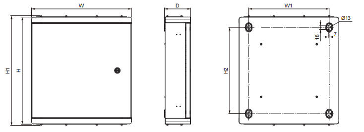 | Ref No. | W | H | D | H1 | W1 | H2 |