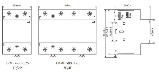 The EKMF7 series is available in multiple current ratings from 16A to 125A and supports different auxiliary contact configurations such as NO and NC, allowing flexible selection for different control requirements.