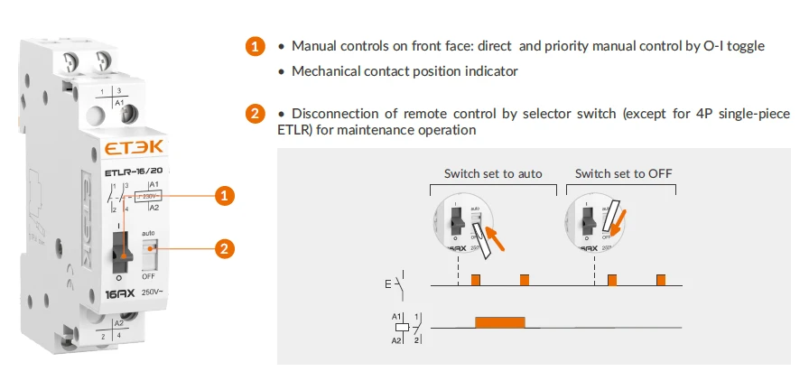 ETLR-16 Modular Impulse Relays are bistable, latching devices engineered for dependable load control, especially in lighting applications. Each momentary pulse cleanly toggles the contact state, enabling centralized or distributed control from any number of push buttons. With zero holding power, ETLR relays minimize standby consumption and preserve the selected state through power interruptions for efficient, reliable operation.