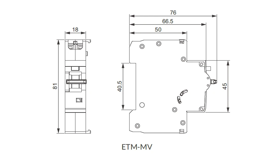 ETM-MV overvoltage release 5. ETM-OF auxiliary contact