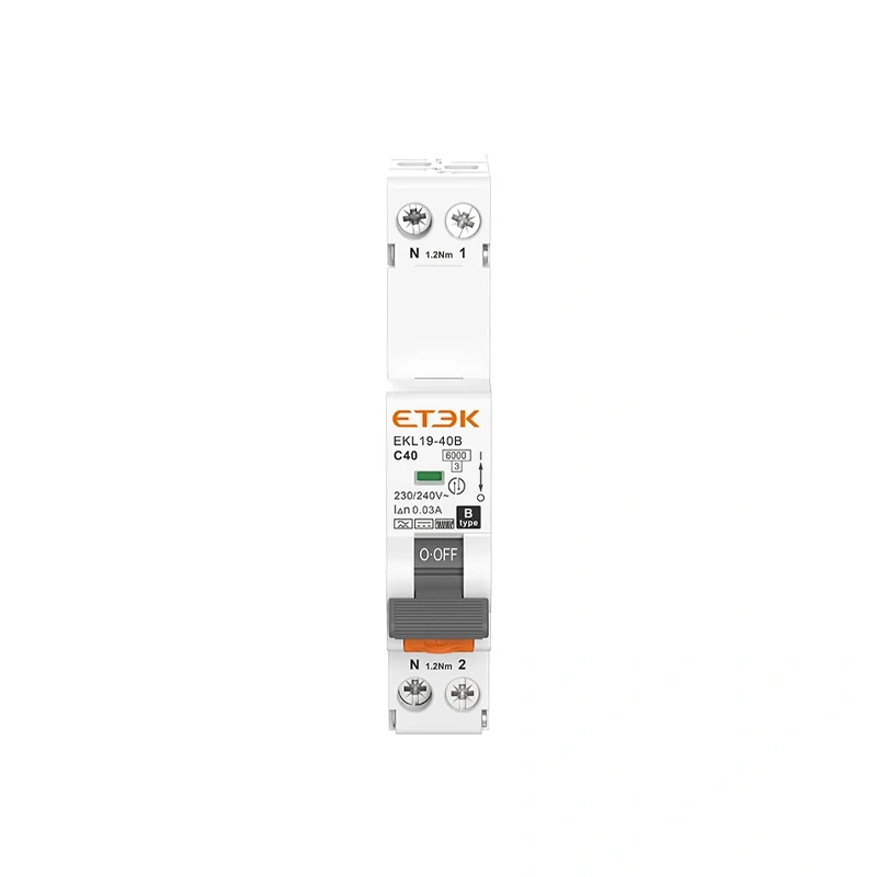 EKL19-40B is a single-module Type B Residual Current Breaker with Overcurrent Protection (RCBO) introduced by ETEK Electric. This advanced circuit protection device efficiently handles overcurrent, short circuits, and earth fault leakages, while being specifically designed to detect complex waveforms and DC residual currents. Its compact single-module design makes it ideal for modern electrical installations where space is limited.