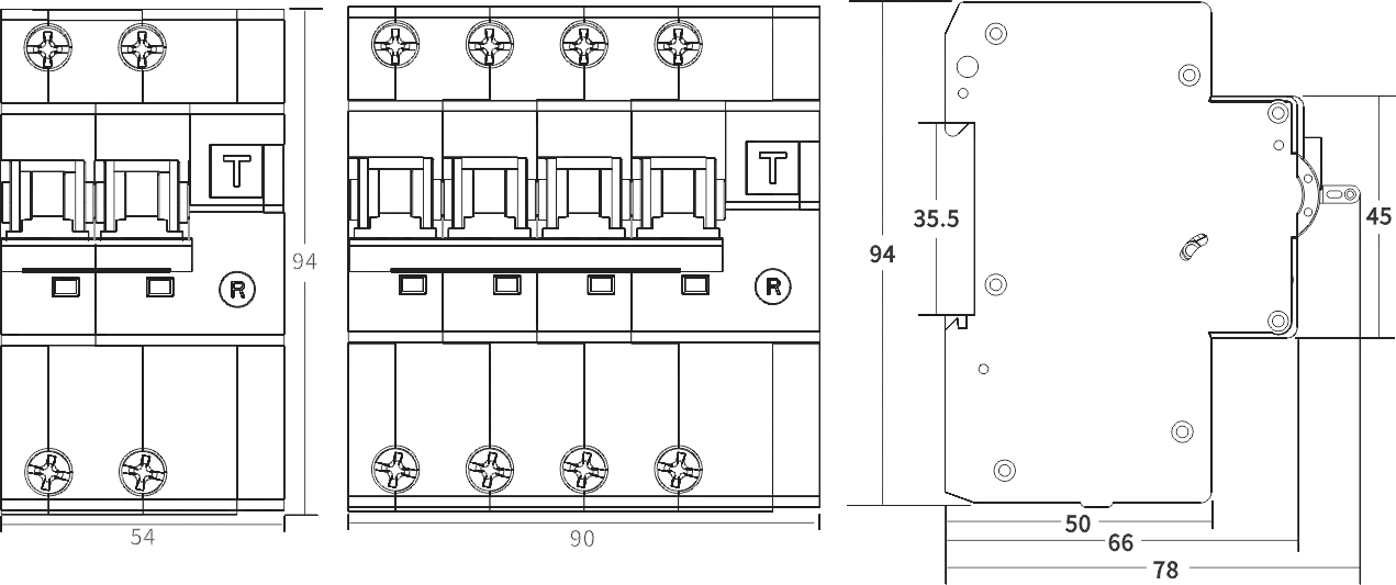 ● Number of poles: 2P(1P+N), 4P(3P+N)