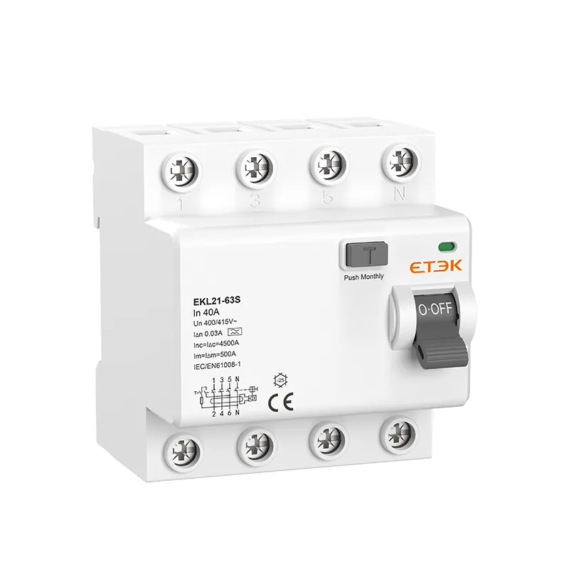 EKL21-63S residual current circuit breaker (RCCB) is a cost-effective circuit protection solution specifically designed for the Central Asia and South American markets. It is suitable for both residential and commercial circuits, supporting 1P+N 240V rated voltage and 3P+N 415V rated voltage, with a rated current of up to 63A. In the event of a risk of electric shock or if the ground fault current exceeds the safety threshold, this RCCB can swiftly disconnect the power supply to ensure unparalleled safety. It can be used in conjunction with the DZ47-63S miniature circuit breaker produced by ETEK Electric to achieve comprehensive circuit protection.