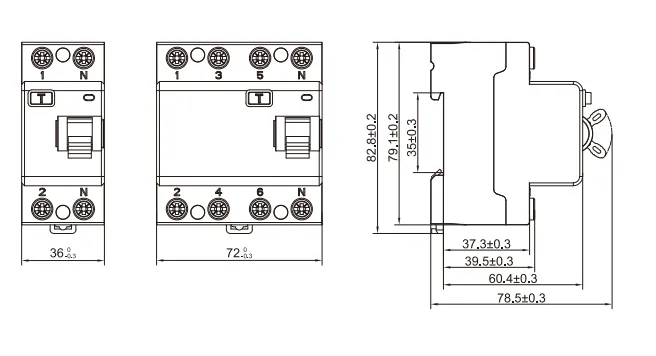 ● Poles: 2P(1P+N), 4P(3P+N), N Pole on right