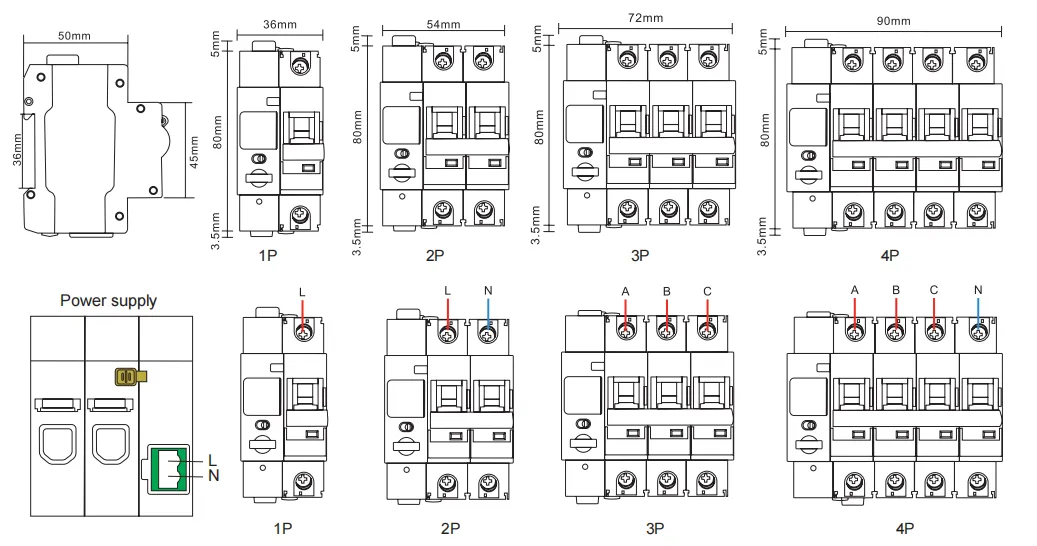 | 0: WiFi (Tuya) | 1P, 2P, 3P, 4P | B, C | 10, 16, 25, 32, 40, 50, 63A | ||||