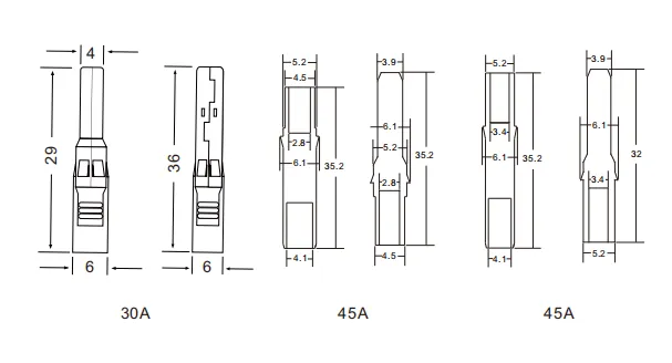 | 45A (4mm2,6mm2; 12AWG, 10AWG ) | |