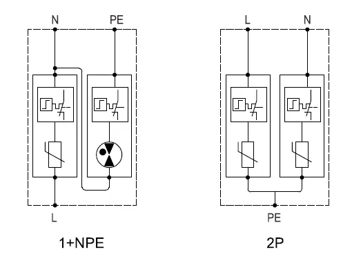 | Mode of protection | L-PE, N-PE | L-N, N-PE |