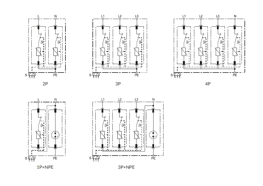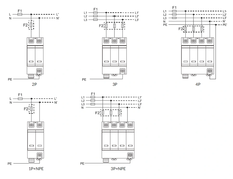 | Mode of protection | L-PE, N-PE | L-PEN | L-PE, N-PE | L-N, N-PE | |