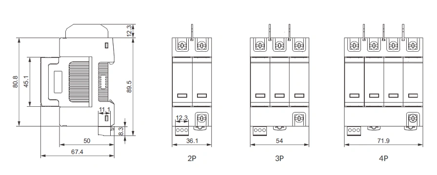 | No. of poles | 2P | 3P | 4P | 1P+NPE | 3P+NPE |