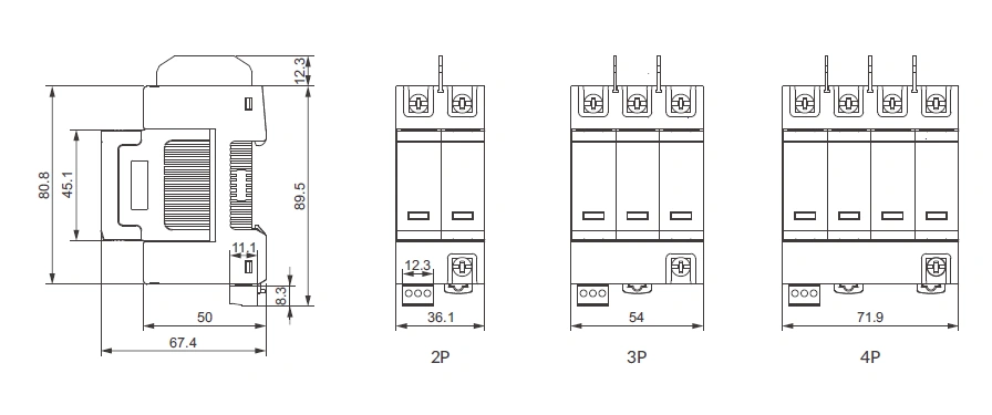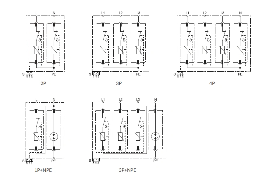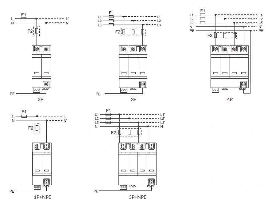 | No. of poles | 2P | 3P | 4P | 1P+NPE | 3P+NPE |