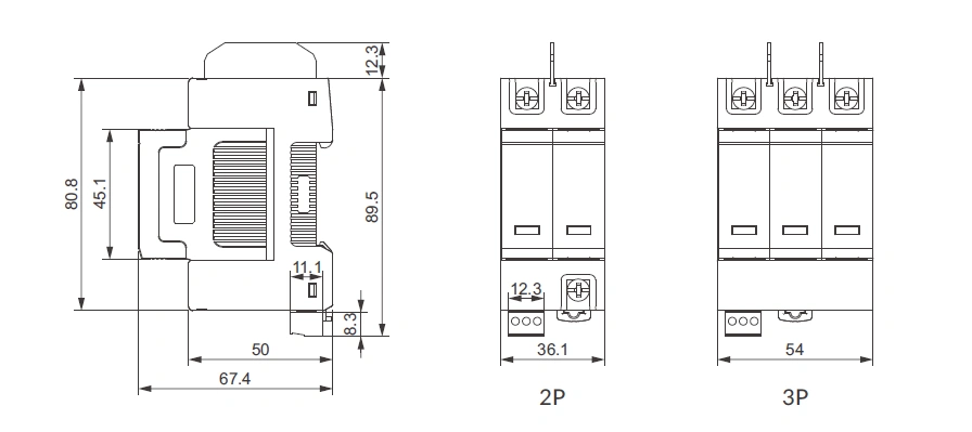 | No. of poles | 2P(2Mods), 3P(3Mods) | ||||